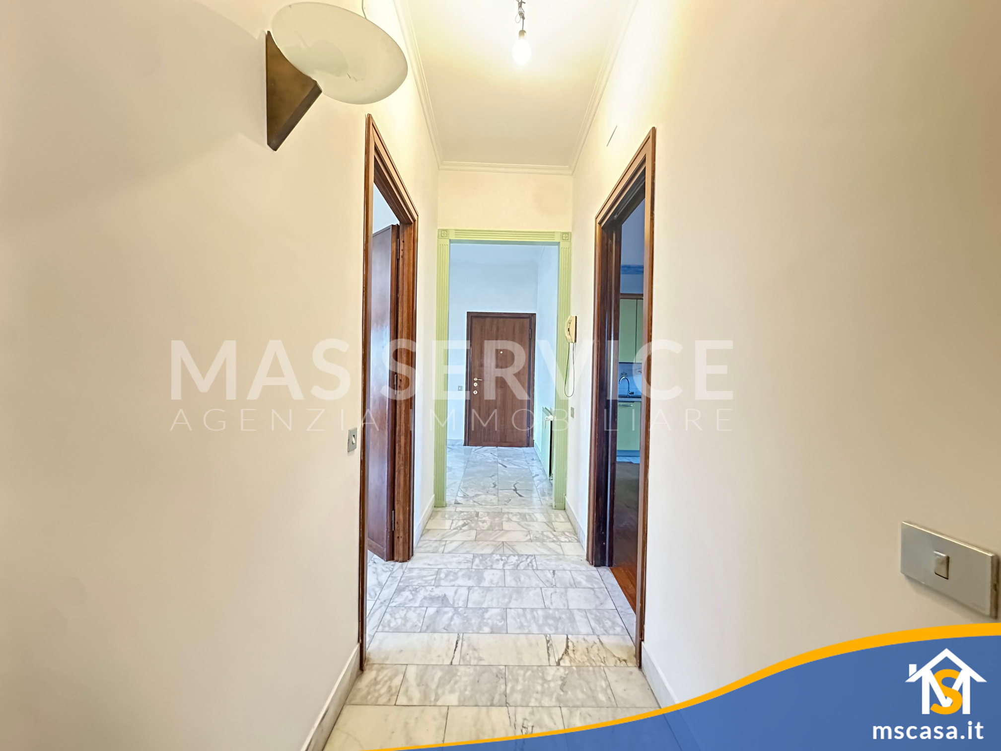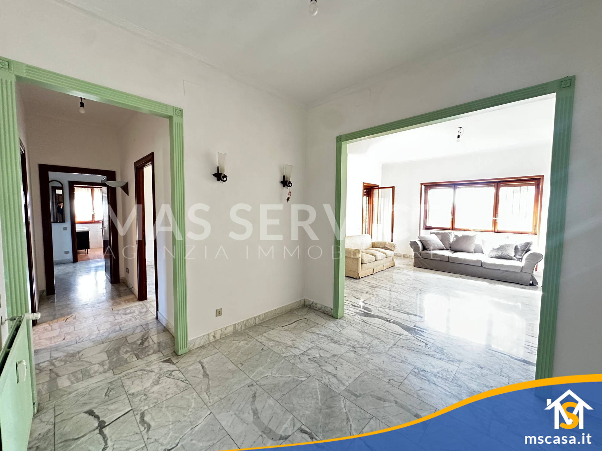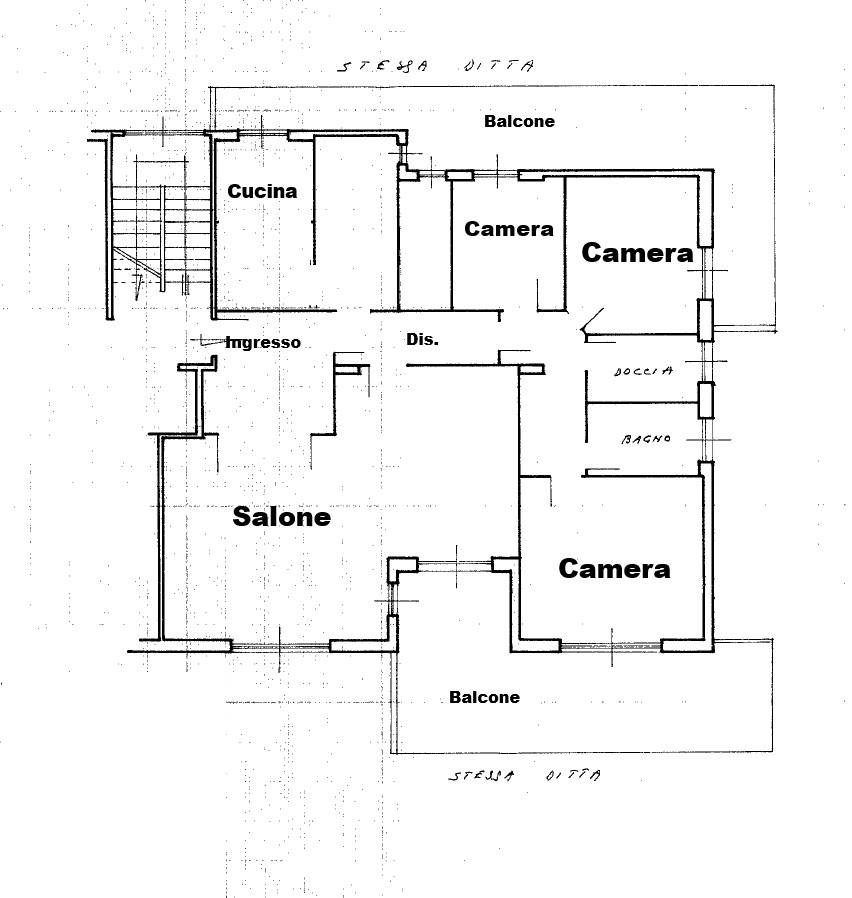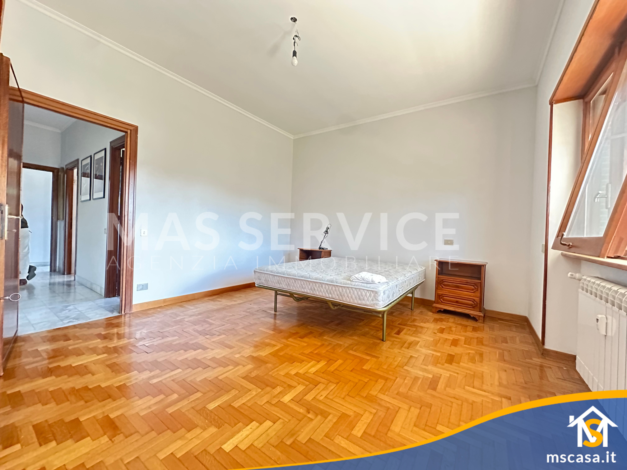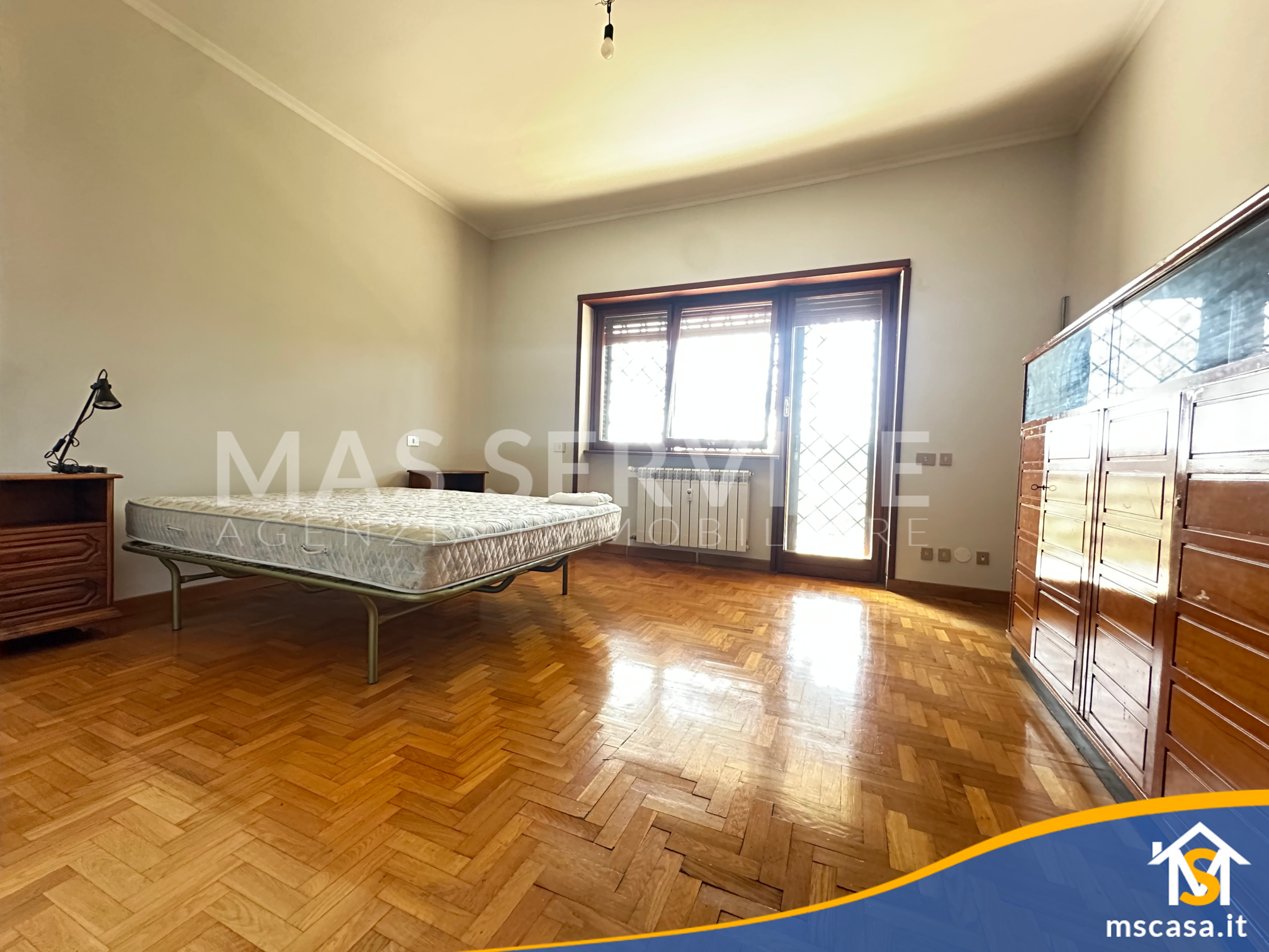 L'immobile è così composto: ampio Ingresso, Salone doppio, Cucina con tinello, Camera da letto padronale con parquet, 2 Camerette, Corridoio, 2 Bagni con finestra e box doccia, 2 Terrazzi.