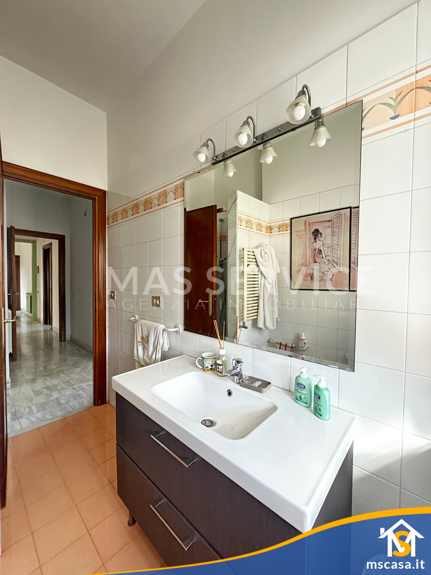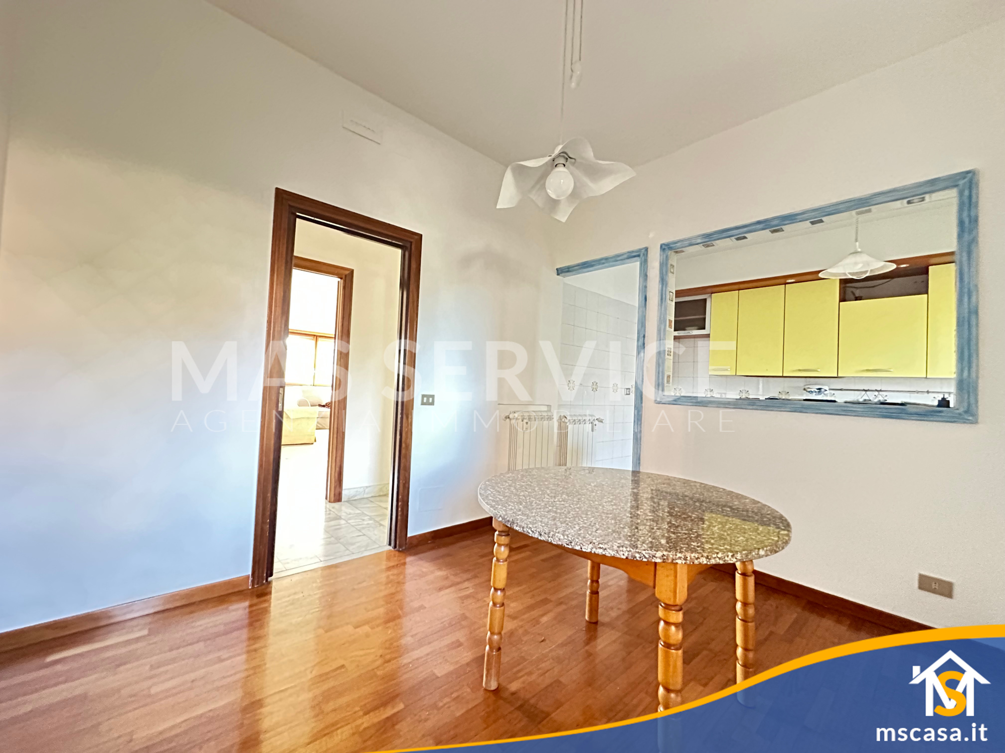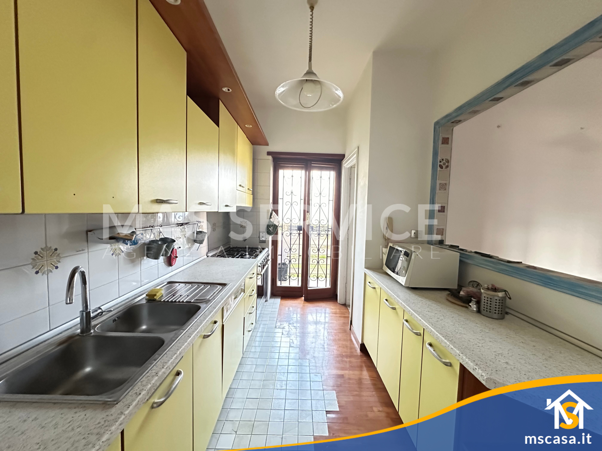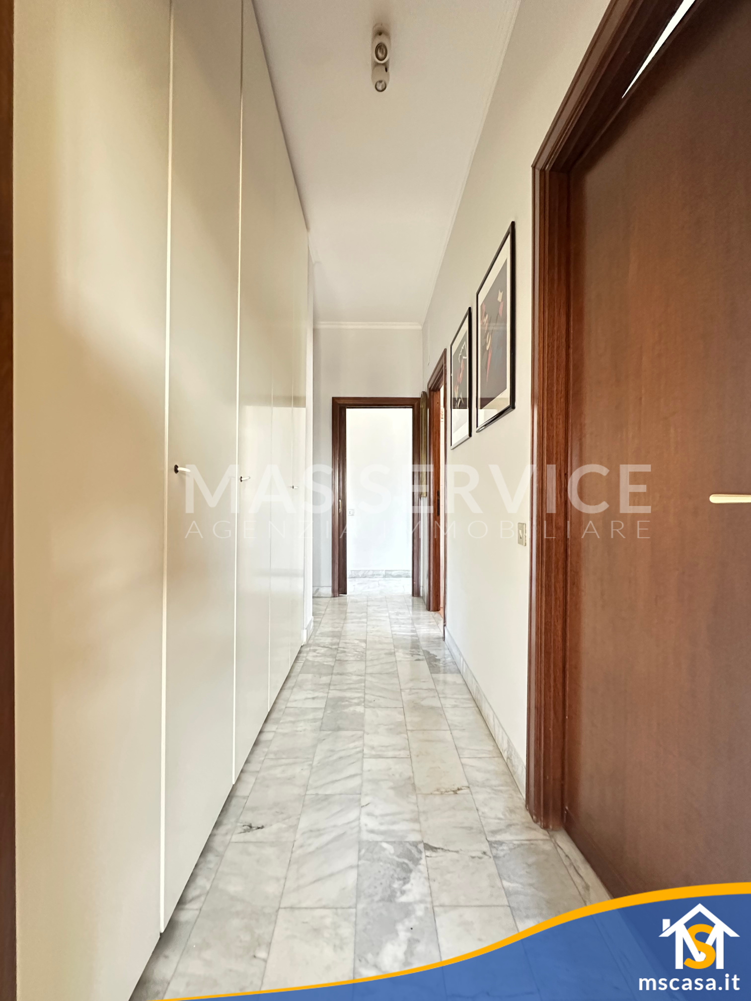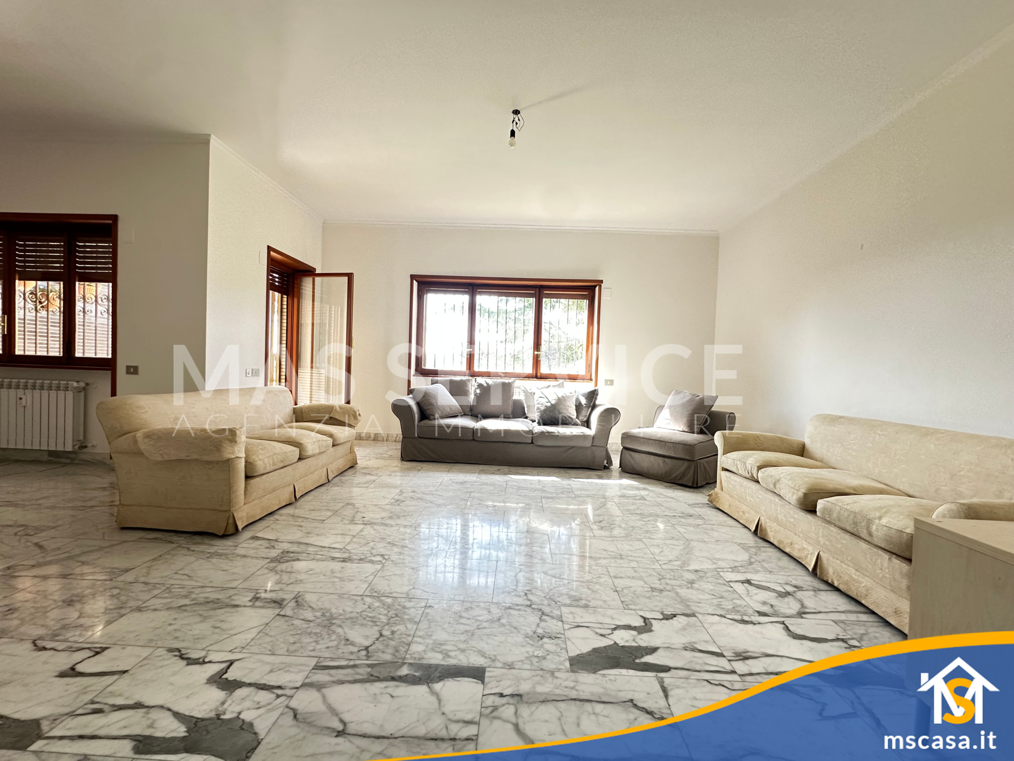 L'immobile è così composto: ampio Ingresso, Salone doppio, Cucina con tinello, Camera da letto padronale con parquet, 2 Camerette, Corridoio, 2 Bagni con finestra e box doccia, 2 Terrazzi.