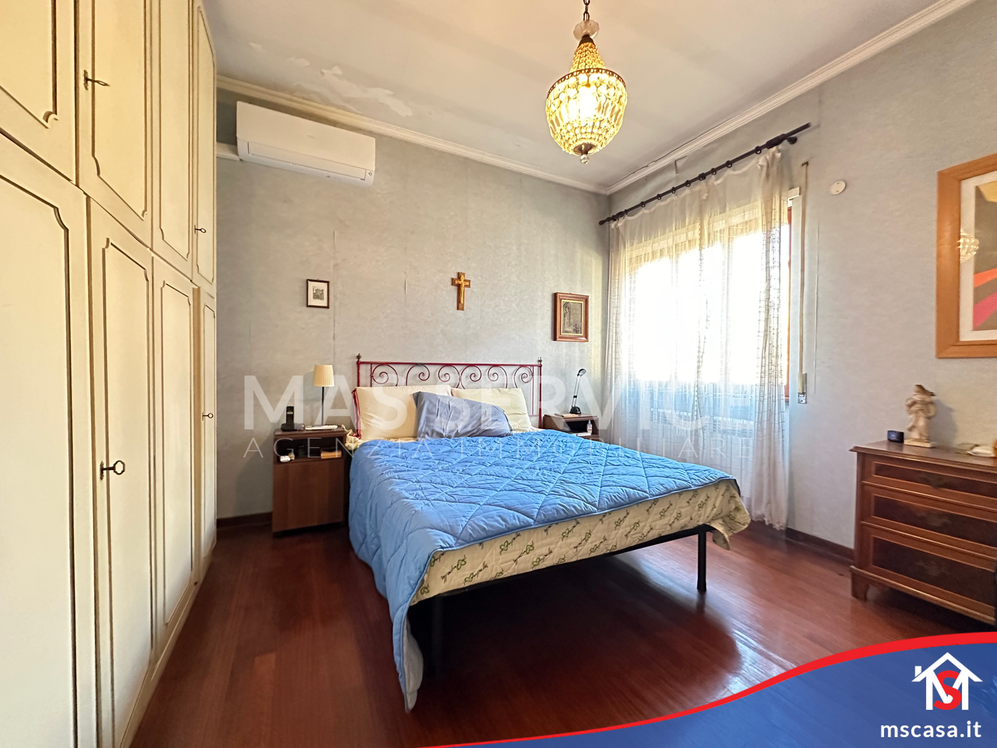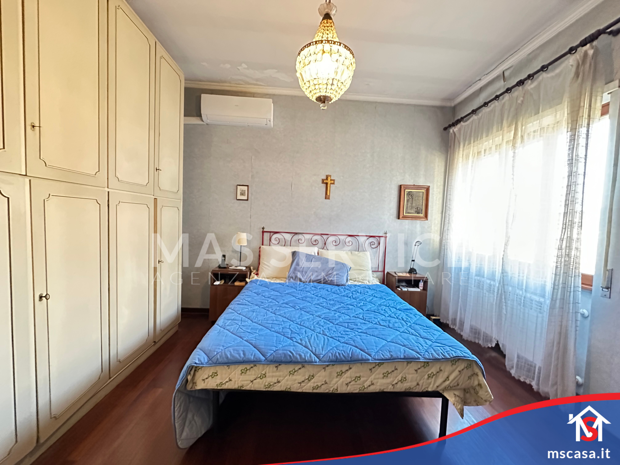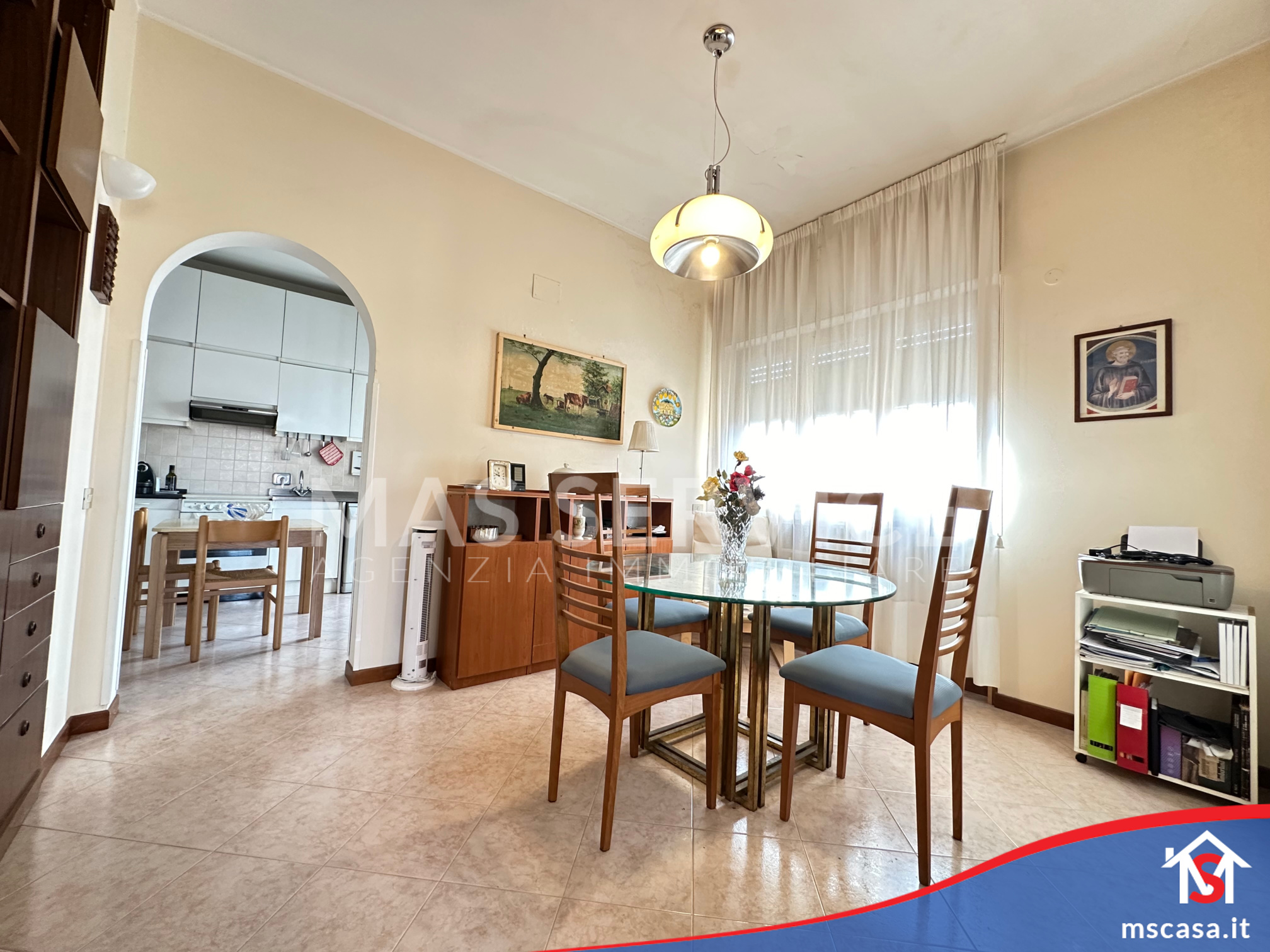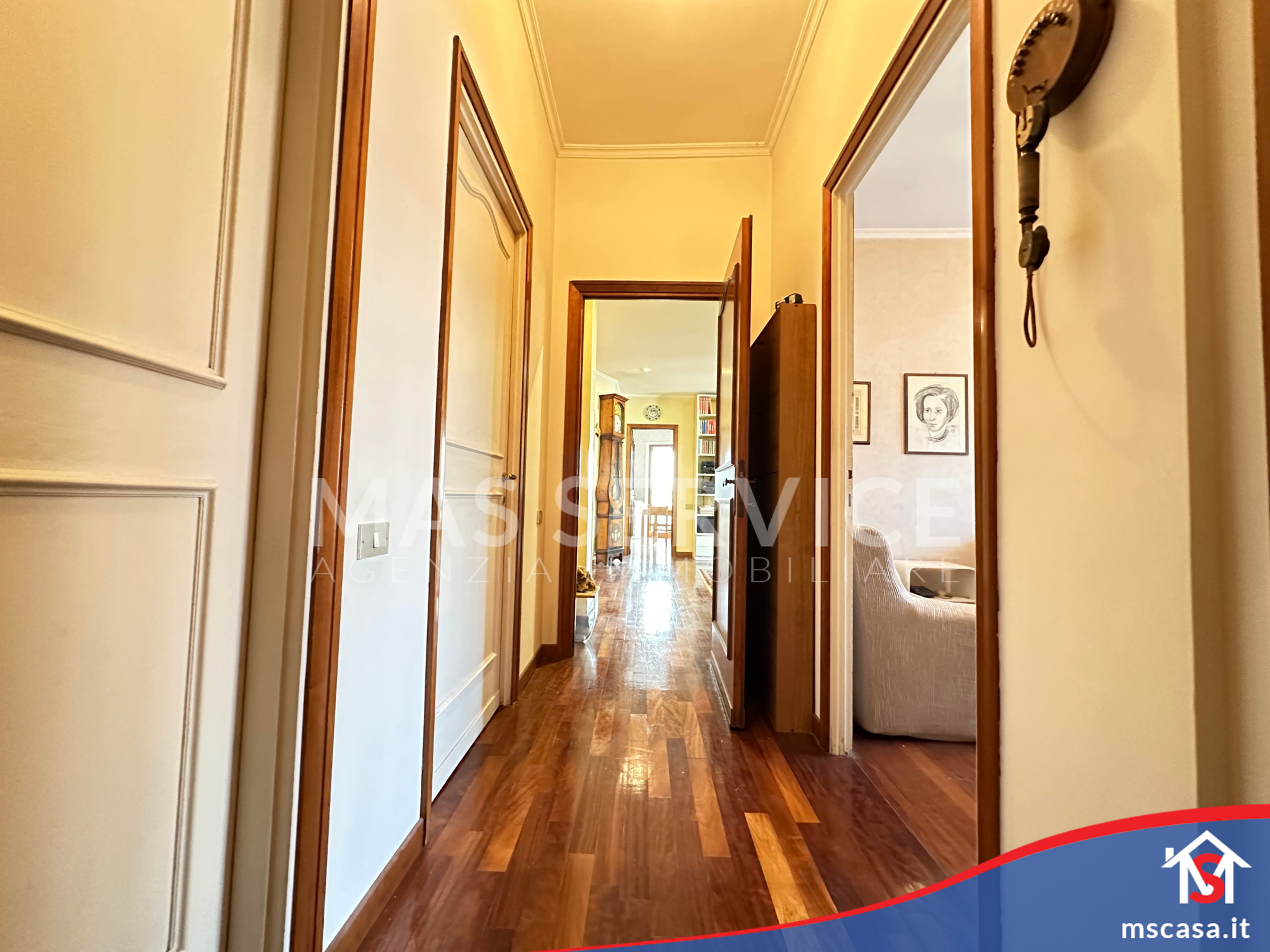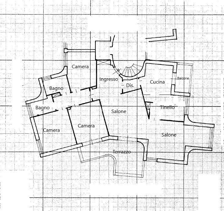 L'immobile è così composto: Ingresso con libreria a muro, Salone triplo con camino funzionante, Cucina abitabile con Tinello e Balcone di servizio, Disimpegno, 3 Camere da letto di cui la camera padronale con armadio a muro, 2 Bagni con finestra di cui uno con vasca e l'altro con doccia, Terrazzo di 17 mq. ca.